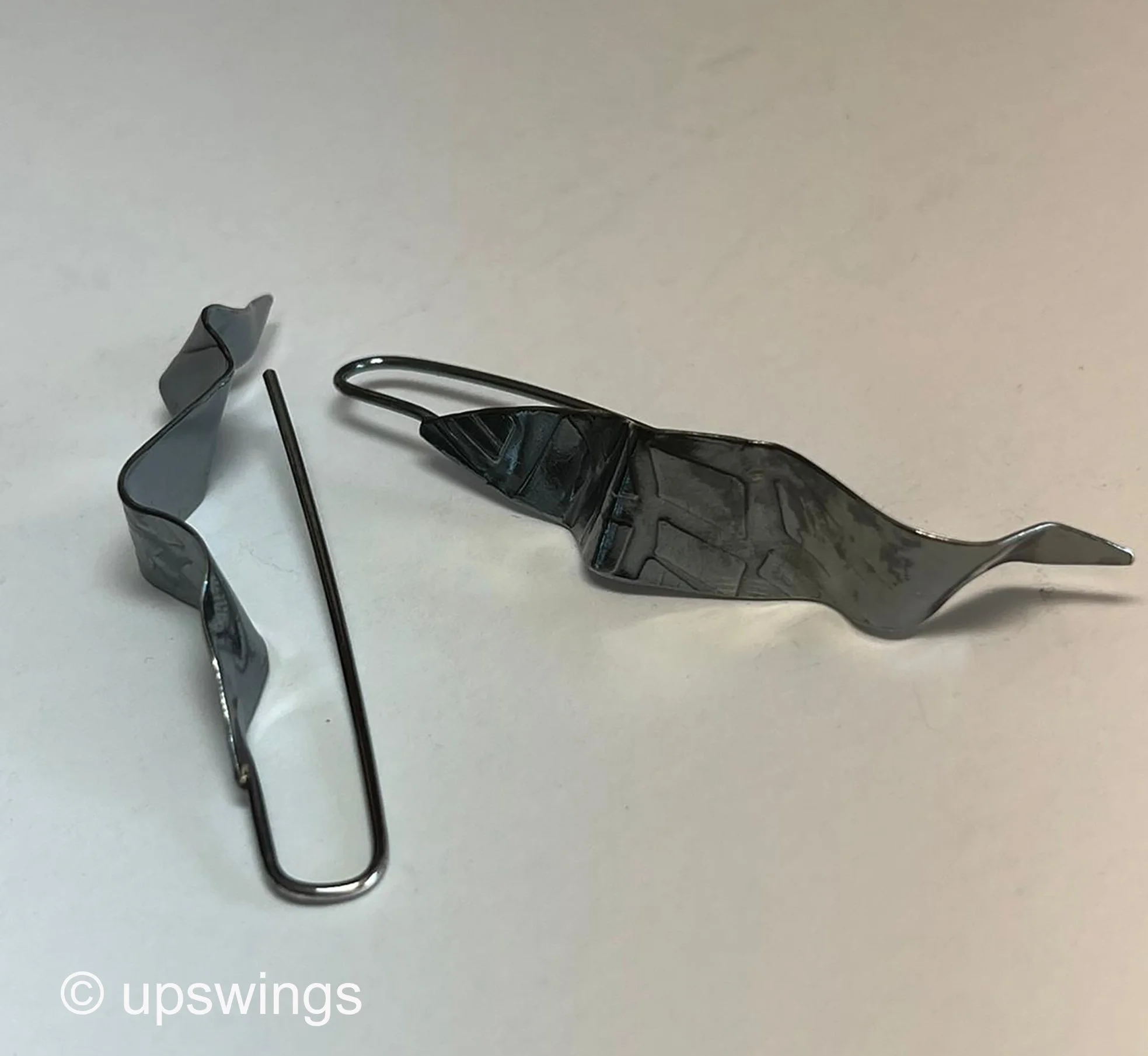 I oxidized these silver ‘Origami’ earrings. They consists of two sleek, metallic forms with a shiny, reflective surface. Each piece has a twisting, ribbon-like shape with smooth curves and subtle angular folds that create a sense of movement and fluidity. The reflective metal captures light and shadow to emphasize its contoured surfaces. The overall composition conveys an abstract, modern sculptural style with minimalist yet dynamic qualities.